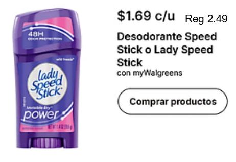 lady speed stick dry" power $c/u desodorante mywalgreens comprar productos