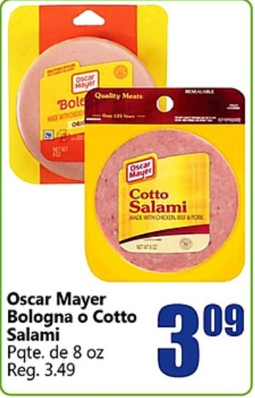 oscar mayer bold quality meats cotto salami made withoon pork bologna pqte reg.
