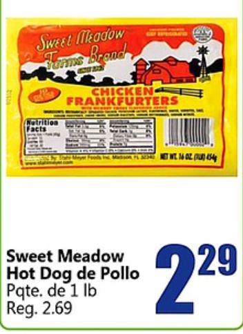 sweet meadow tarms brend chicken frankfurters nutrition facts (sweet pollo pqte reg.