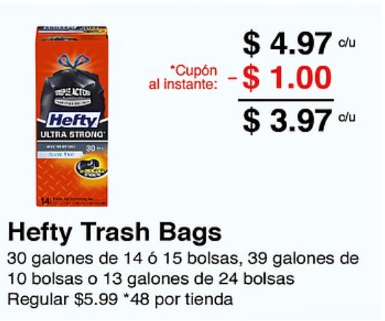 eacto hefty ultra strong *cupón instante: trash bags alones bolsas regular $*por tienda