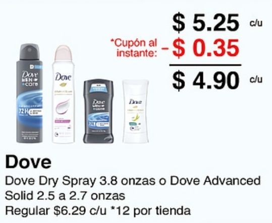 dove hsh-> core done *cupón instante: spray onzas advanced solid regular $c/u *por tienda