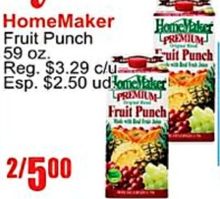 homemaker fruit punch premium reg. $c/u esp. $udomemaker!