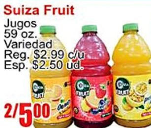 suiza fruit jugos variedad reg. esp. $ud. /fruit frukt