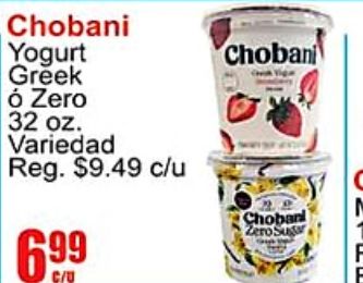 chobani yogurt greek zero variedad reg. $c/u choban zerostar