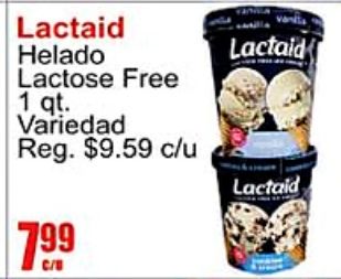 lactaid helado lactose free variedad reg. $c/u