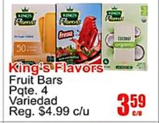 kings foros fresa king's flavors fruit bars pqte variedad reg. $c/u