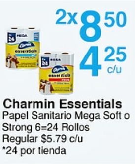 moga essentials xc/u charmin papel sanitario mega soft strong rollos regular $c/u *por tienda