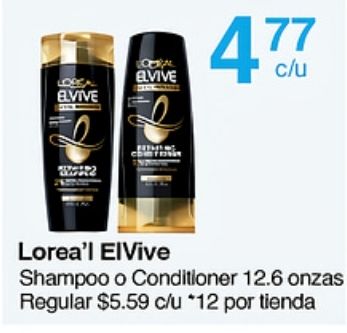 elvive lorea'l shampoo conditioner onzas regular $c/u *por tienda