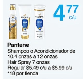pantene shampoo acondicionador onzas hair spray regular $c/u *por tienda