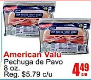 american valu pechuga pavo reg. $c/u