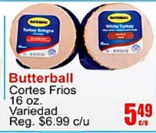 white turkey solegra butterball cortes frios variedad reg. $c/u