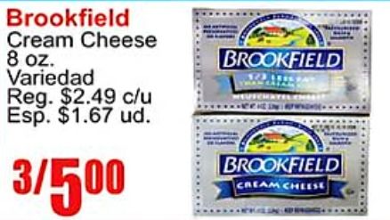 brookfield cream cheese variedad reg. $c/u esp. $ud. /brookfield