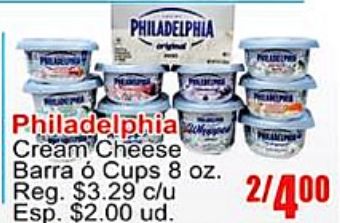 philadelphia cream cheese barra cups reg. $c/u esp. $ud.