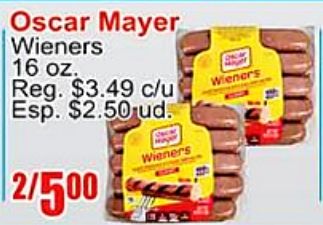 oscar mayer wieners reg. $c/u esp. $ud. /wieners