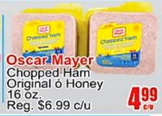 chemped oscar mayer chopped original honey reg. $c/u chenoed