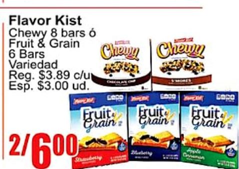 flavor kist chewy bars fruit grain variedad $c/u esp. $ud. /chewy strauberry bores copo