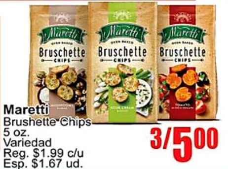 mareth bruschette -chips chips maretti brushette chips- variedad reg. $c/u esp. $ud.