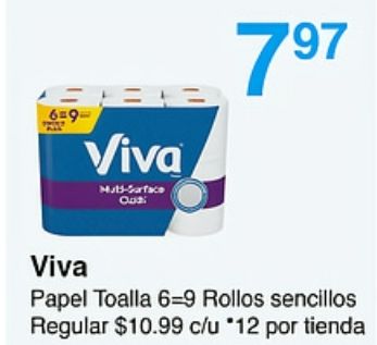 viva muti-surface papel toalla rollos sencillos regular $c/u tienda