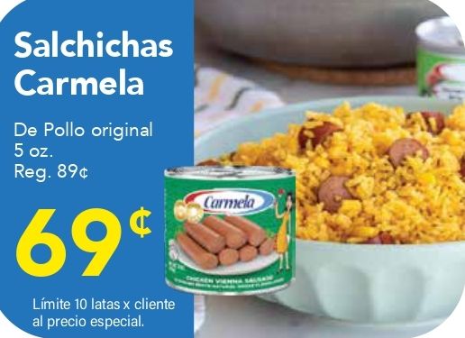 salchichas carmela pollo original reg. lĂmite latas cliente precio especial.
