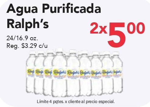 agua purificada ralph's reg. $c/u xring rule ring bagels baletes refits infantes lĂmite pqtes. cliente precio especial.