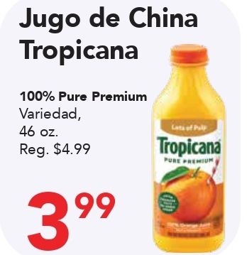 jugo china tropicana pure premium variedad reg. $tropicana