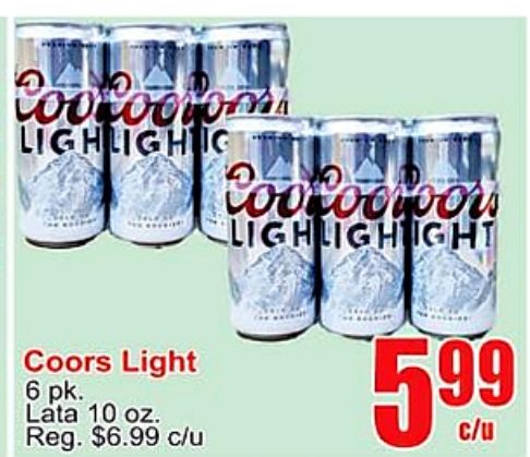 coocoocom lighlightc coors light lata reg. $c/u lighlightght