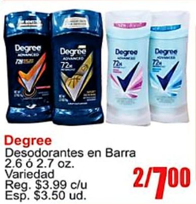 degree advanced desodorantes barra variedad reg. $c/u esp. $ud.