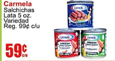 carmela salchichas lata variedad reg. camelo carmelo carmes chicken chocken spicy