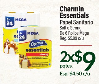 Charmin Essentials Papel Sanitario Soft o Strong De 6 Rollos Mega