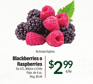 Blackberries o Raspberries De U.S., Méjico o Chile Pqte. de 6 oz.