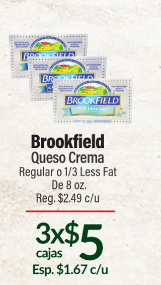 Brookfield Queso Crema Regular o 1/3 Less Fat De 8 oz.