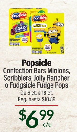 Popsible Confection Bars Minions, Scribblers, Jolly Rancher o Fudgsicle Fudge Pops. De 6 ct. a 18 ct.