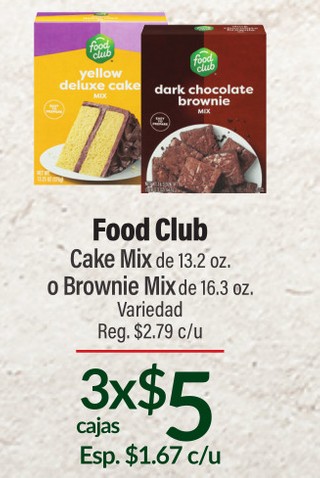 Food Club Cake Mix de 13.2 oz. o Brownie Mix de 16.3 oz. Variedad