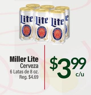 Miller Lite Cerveza 6 Latas de 8 oz.