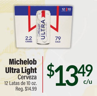 Michelob Ultra Light Cerveza Cerveza 12 Latas de 10 oz.