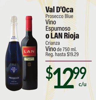 Val D'Oca Presecco Blue Vino Espumoso o LAN Rioja Crianza Vino de 750 ml.