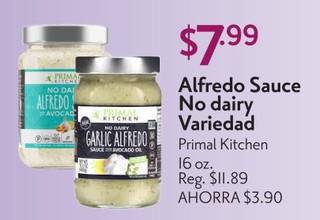 Alfredo Sauce No dairy Variedad Primal Kitchen 16 oz