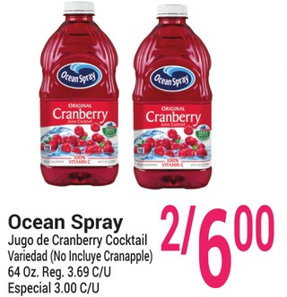 Ocean Spray Jugo de Cranberry Cocktail Variedad (No Incluye Cranapple) 64 Oz.