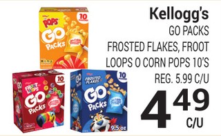 Kellogg's GO PACK FROSTED FLAKES, FROOT LOOPS O CORN POPS 10'S