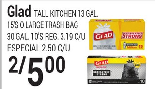 Glad TALL KITCHEN 13 GAL. 15'S O LARGE TRASH BAG 30 GAL. 10'S.
