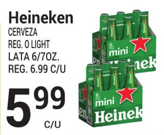 Heineken CERVEZA REG. O LIGHT LATA 6/7OZ.
