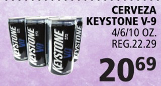 Cerveza keystone V-9 4/6/10oz.