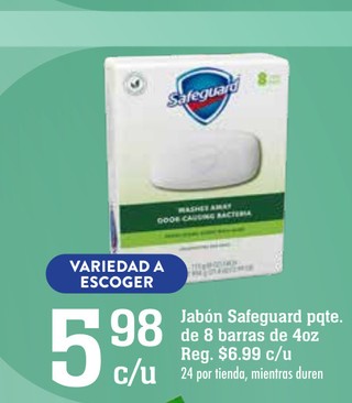 Jabon Safeguard Pqte. de 8 barras de 4 oz.