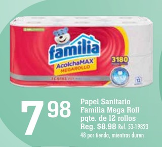 Papel Sanitario Familia Mega Roll Pqte. de 12 rollos. 3 Ref. 53-19823.