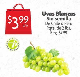 Uvas Blancas Sin Semilla De Chile o Peru Pqte. de 2 lbs.