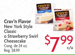 Crav'n Flavor New York Style Classic o Strawberry Swirl Cheesecake Cong. de 24 oz.