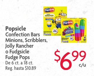 Popsicle Confection Bars Minions, Scribblers, Jolly Rancher o Fudgsicle Fudge Pops De 6 ct. a 18 ct.