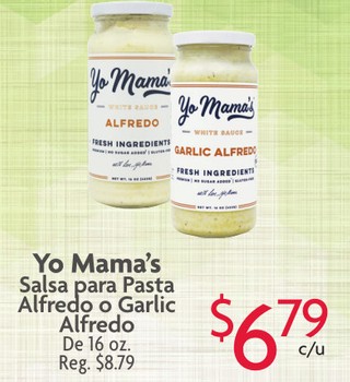 Yo Mama's Salsa para Pasta Alfredo o Garlic Alfredo De 16 oz.