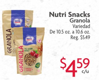 Nutri Snacks Granola Variedad De 10.5oz. a 10.6oz.