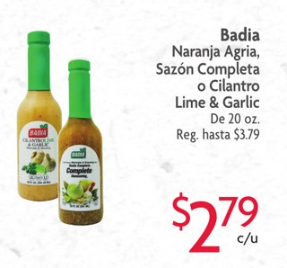 Badia Naranja Agria, Sazon Completa o Cilantro Lime & Garlic De 20oz.